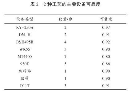 剝離和采煤作業(yè)采用的2種工藝中,每個環(huán)節(jié)的設(shè)備種類已經(jīng)確定,每種設(shè)備的數(shù)量及其長期可靠度見表2。