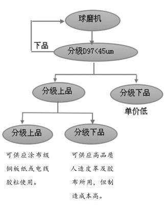 5.由于只能研磨特定品級之產(chǎn)品,若要篩選超微細粉,同新型球磨機比較,其工藝流程長,附加值較低。如圖所示: