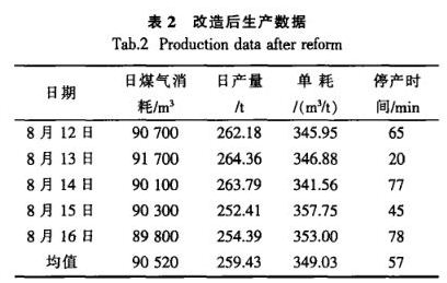 改造后日生產(chǎn)合格石灰產(chǎn)量可達(dá)259.43t(相比改造前產(chǎn)量增加15.4t左右),石灰單耗為349.03?/t(相比改造前電耗降低32.77?/t),1?煤氣按0.65元計(jì)算,每生產(chǎn)1t石灰可降低成本21.3元,每天可降低成本7434.5元,達(dá)到了預(yù)期效果。