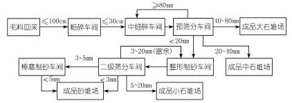 某水電站砂石系統(tǒng)屬大型砂石加工系統(tǒng),因此,在制砂工藝的設(shè)計(jì)上非常謹(jǐn)慎。目前常用的制砂工藝是立軸式?jīng)_擊破碎機(jī)與棒磨機(jī)聯(lián)合制砂工藝,這種生產(chǎn)工藝可以通過試驗(yàn)數(shù)據(jù)合理地調(diào)整細(xì)度模數(shù),確保成品砂的質(zhì)量穩(wěn)定。經(jīng)研究,該工藝在該水電站砂石系統(tǒng)中同樣適合,下面,就該水電站制砂工藝的設(shè)計(jì)選定做出介紹。