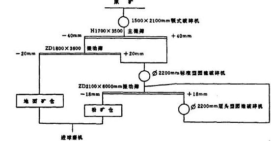 投產(chǎn)至今,為了達(dá)產(chǎn)穩(wěn)產(chǎn),降低碎礦終產(chǎn)品的粒度,對碎礦的工藝流程進(jìn)行了一系列的技術(shù)改造。其中影響較大的有: