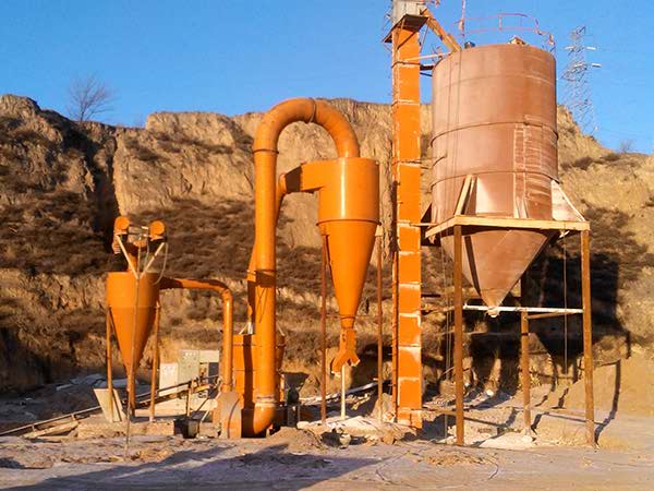 4525型擺式磨粉機(jī)整機(jī)結(jié)構(gòu)是由主機(jī)、選粉機(jī)、管道裝置、離心引風(fēng)機(jī)、除塵器組成,其附屬設(shè)備由顎式破碎機(jī)、斗式提升機(jī)、儲(chǔ)料斗、電磁振動(dòng)給料機(jī)、電控柜等組成。
