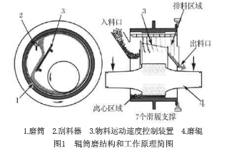 輥筒磨的結(jié)構(gòu)和工作原理圖見圖1。