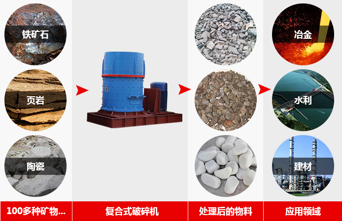 復(fù)合式破碎機(jī)簡(jiǎn)稱復(fù)合破,廣泛適用于水泥廠的生料、熟料細(xì)碎作業(yè),同時(shí)也可用于白云石、焦寶石、鉛鋅礦、蛇紋石、高爐渣、煤矸石、磷礦石等中等硬度物料的細(xì)碎作業(yè),特別適用于硬質(zhì)石灰?guī)r、白云巖、花崗巖、玄武巖等人工造砂或高速公路路面石料的加工破碎。