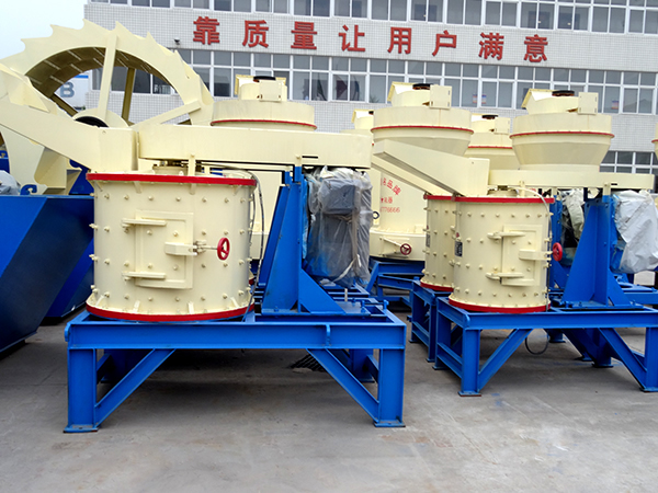 物料由復(fù)合式破碎機(jī)(復(fù)合破)上部垂直落入高速旋轉(zhuǎn)的葉輪內(nèi),在高速離心力的作用下,與另一部分以傘狀形式分流在葉輪四周的物料產(chǎn)生高速撞擊與粉碎,物料在互相撞擊后,又會(huì)在葉輪和機(jī)殼之間以物料形成渦流多次的互相撞擊、摩擦而粉碎,從下部直通排出,形成閉路多次循環(huán),由篩分設(shè)備控制達(dá)到所要求的成品粒度。