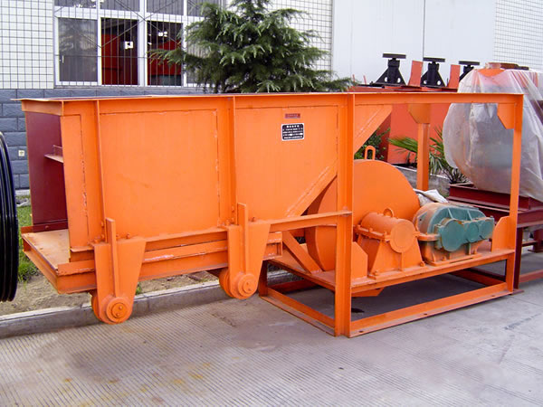 槽式給料機可以架設于地面,也可以吊裝在礦倉卸料口上。槽底板作往復運動,其沖次為20-60次/min,沖程為20-200mm。沖程可由驅動裝置偏心輪進行適當調整,偏心距為沖程之半。據(jù)一些選礦廠生產實踐,對于粘性礦石,偏心距不應小于30mm。槽式給料機的槽體寬度約為給料較大粒度的2-2.5倍。較大的槽式給料機,可滿足小于500mm粒度鐵礦石的給礦。較常選用的規(guī)格是980*1240槽式給料機,其給料粒度為350-0mm,適于作為400*600鄂式破碎機的給料設備。